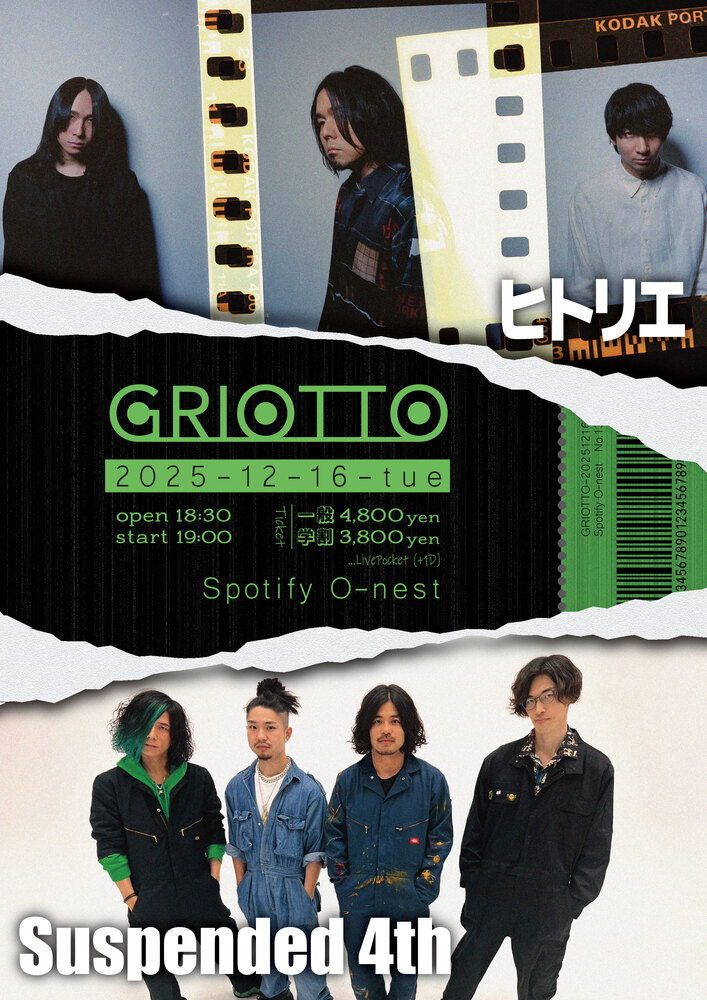 「GRIOTTO」 SCHEDULE 2025/12/16(火) Spotify O-nest w/ヒトリエ OPEN 18:30 / START 19:00 ◼︎Ticket (10月21日 21:00~) ADV ¥4,800(D代別) / 学割 ¥3,800(D代別) https://t.livepocket.jp/e/1216__griotto URLをコピーする 報告する